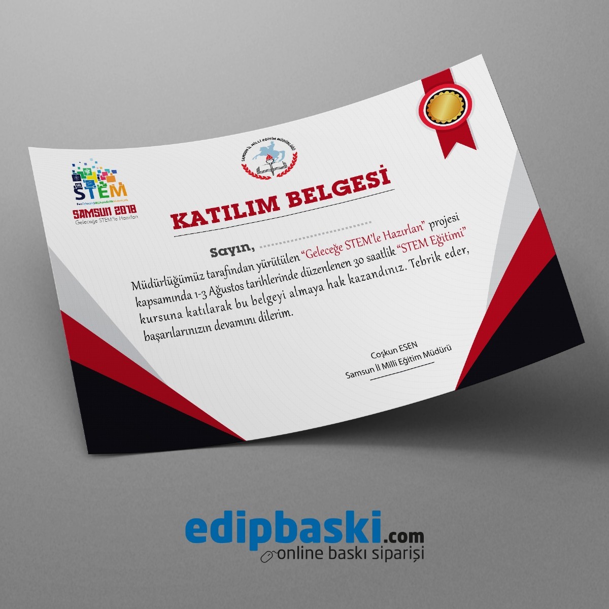 SipariÅŸ vermeden önce Lütfen Dikkatlice Okuyunuz! Belgede yazılmasını istediÄŸiniz sabit bilgileri aÅŸağıdaki seçenekleri doldurarak belirtebilirsiniz. Çoklu isim ekleme ve Farklı metin seçenekleri için ÇOKLU BİLGİ EKLEME EXEL ÅžABLONU'nu altta bulunan Dökümanlar kısmından indirerek bilgi giriÅŸi yapabilirsiniz.  Gerekli Logoların yüklemesini Sepete ekledikten sonra yapabilirsiniz.
